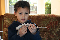 The family had a good time guessing which animal the skull came from. Mommy correctly identified it as an opossum before researching it online. From the illustrations we had a good time identifying the other parts of the skeleton.