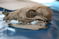 Daddy recently came across an animal skeleton at the golf course. Being the homeschool dad that he is, in between playing he scooped up the skull and brought it home!