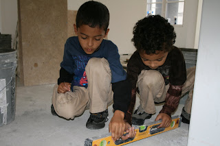 Today as they began laying the stone floor the boys had an opportunity to practice using a level. The subcontractors laying the floor seem very friendly and approachable so I am hoping that the boys (and I) will have an opportunity to try our hand at laying floor tiles.