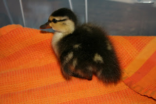 Sadly, the other little duckling got away from me while I was catching this one. I remain hopeful that we can find it before we take this baby duckling to the wildlife rescue tomorrow morning. Until then, it will sleep in a Rubbermaid tub in a 78-80 degree room along with our 2 clutches of Leopard gecko eggs.