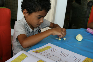 The purpose of this exercise was have the students observe how many sides each shape has and to be aware of the fact that a square has 4 equal sides, a triangle 3 equal sides, etc.