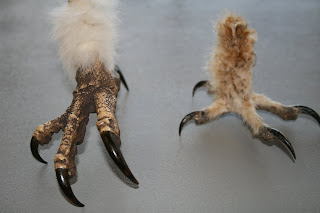 We also had an opportunity to look at various bird feet and talons. This was an opportunity to discuss the fact that all birds have 4 toes, but that their feet can be very different from species to species and can give clues as to what their habitats are like as well as their primary food source.