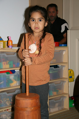 This hands-on presentation allowed the children to not only see what materials the early Pioneers had, but also touch and use them. For some of the students, it was exhausting work!