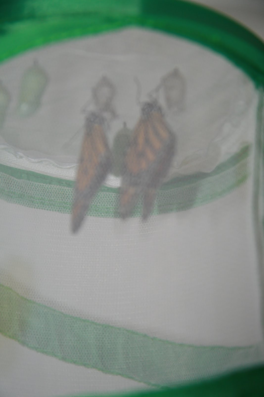 This morning we awoke to two butterflies…I hope the others turn soon because I’m slightly worried about how I will release the monarchs without disturbing the other chrysalis’.