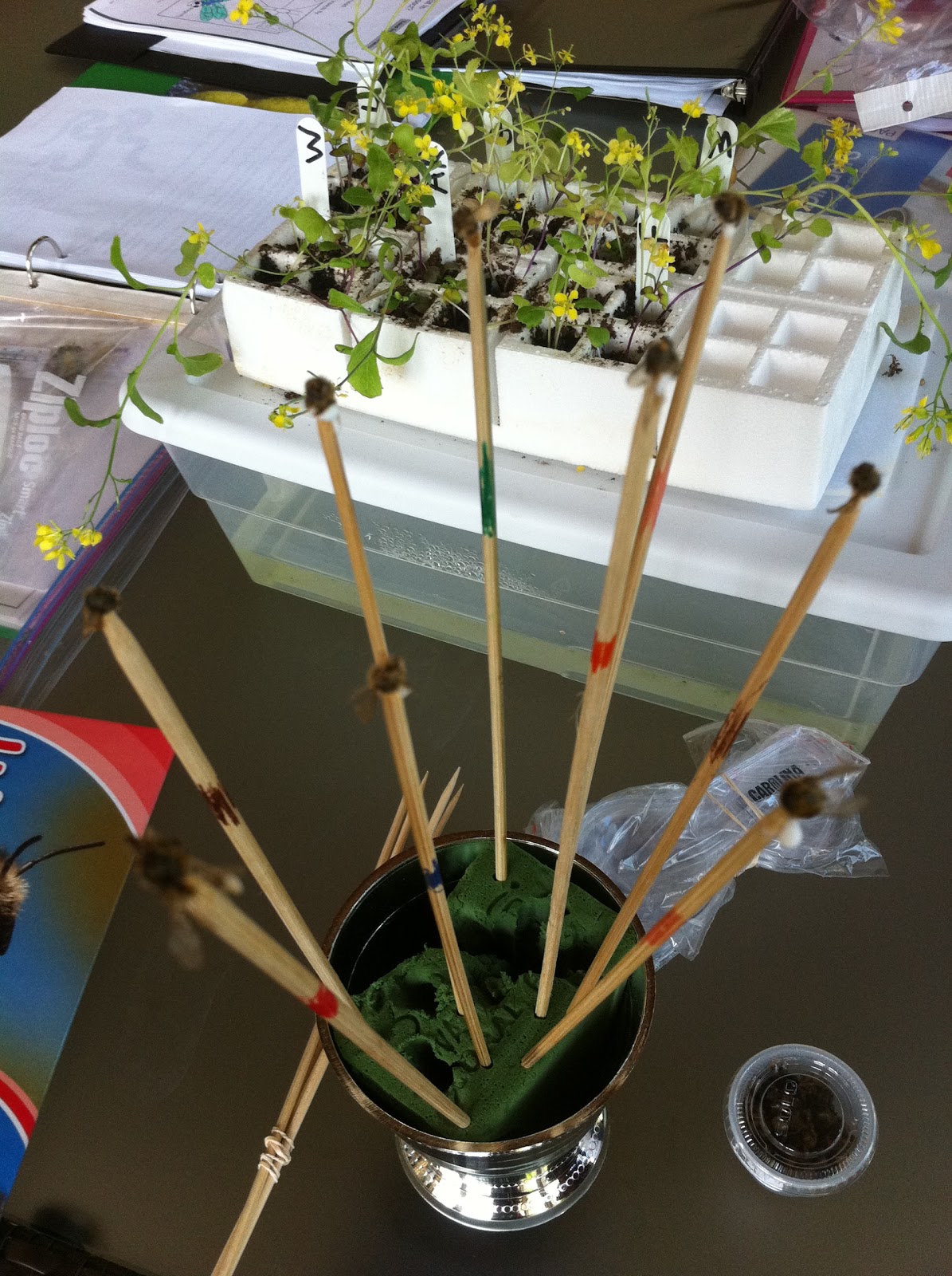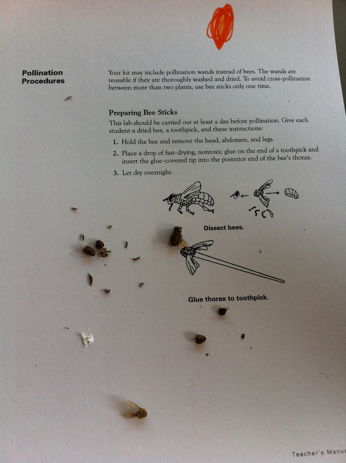 | making pollination wands from dried bees |